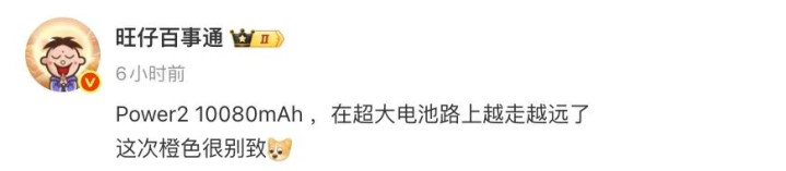 跟着期间的推动,博主@旺仔百事通 在今天的一份爆料中提到:“Power2 10080mAh,在超大电板路上越走越远了。此次橙色很别致”。